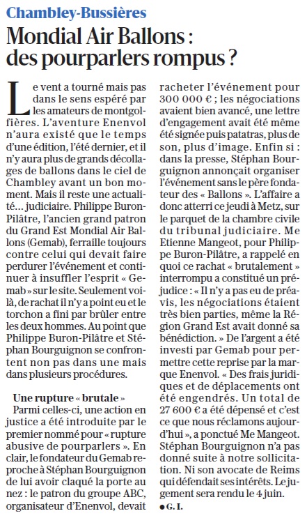 MONDIAL AIR BALLONS: des pourparlers rompus? Laisser un commentaire / Médias / Par Étienne Mangeot LE REPUBLICAIN LORRAIN, 10 mars 2026